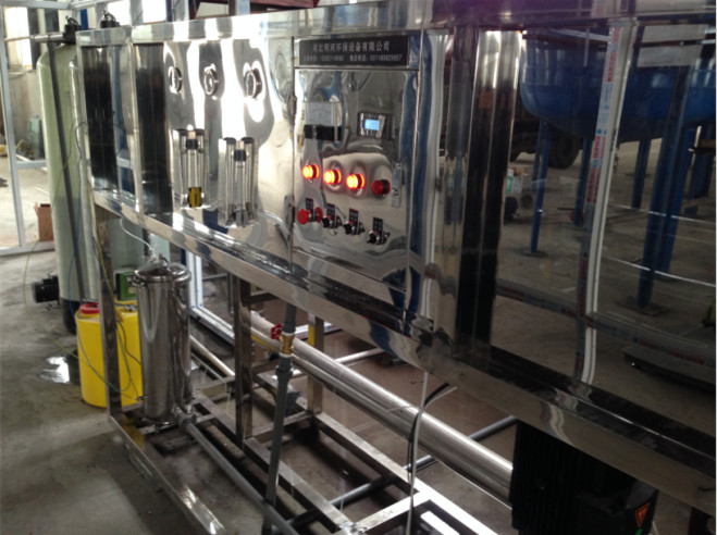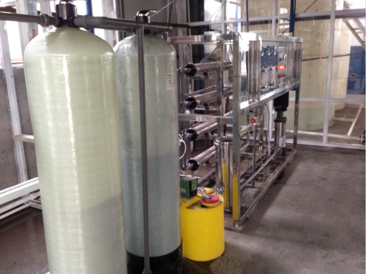 二、該設備安裝條件 1、原 水:井水。 2、運行方式:全自動控制運行。 3、設計界線:從原水箱入口至純水箱出口。 4、電 源:380伏 5、安裝廠房:40㎡設備安裝操作室,有地下排水系統。三、客戶要求 1、產水用途:水泥攪拌機生產用水。 2、產 水 量:≥3噸/h 3、出水水質:出水電導率≤25μs/cm,設備采用韓國進口反滲透膜、全自動控制閥頭。四、設備采用工藝 原水箱+石英砂+活性炭+阻垢設備+一級高壓泵+一級反滲透自動控制裝置+純凈水箱+管道壓力泵五、工程結果